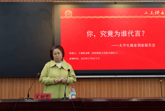 11月6日下午,河南科技大学数学与统计学院、丽正书院在工科4-605会议室举办就业创业论坛。此次论坛特邀请洛阳朝霞文化股份有限公司联合创始人、董事兼总编辑,洛龙区妇联副主席,泰伦德学校校长及幼儿园园长王朝霞女士开展以《你,究竟为谁代言!》为题的专题讲座。数学与统计学院党委书记张清波出席本次活动,2022级学生代表100余人参加。此次讲座由2022级辅导员王梦琦主持。